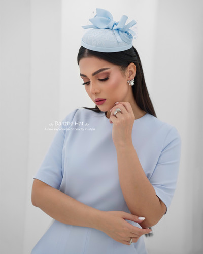 کلاه فرانسوی رنگ آبی مدل ملورین دیزاین شده با پاپیون و دانتل