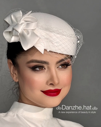 کلاه پیلباکس مدل ماریا دیزاین شده با پاپیون کوچک و تور